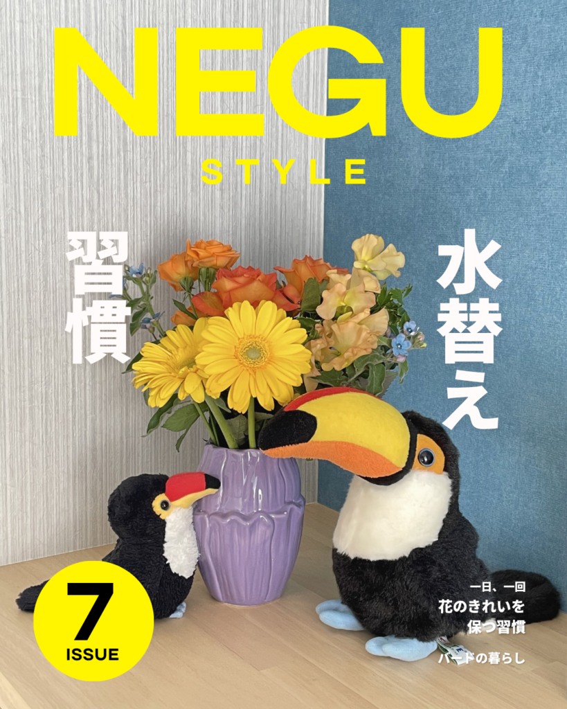 HOME > NEGU STYLE NEGU STYLEーA quiet magazine for thinking life FEATURE vol.07いろどり習慣、花瓶にもこだわり ISSUE LIST vol.01/旅先で、出会う vol.02/定位置はここだ vol.03/避けろ、紫外線 2026年4月5日 author